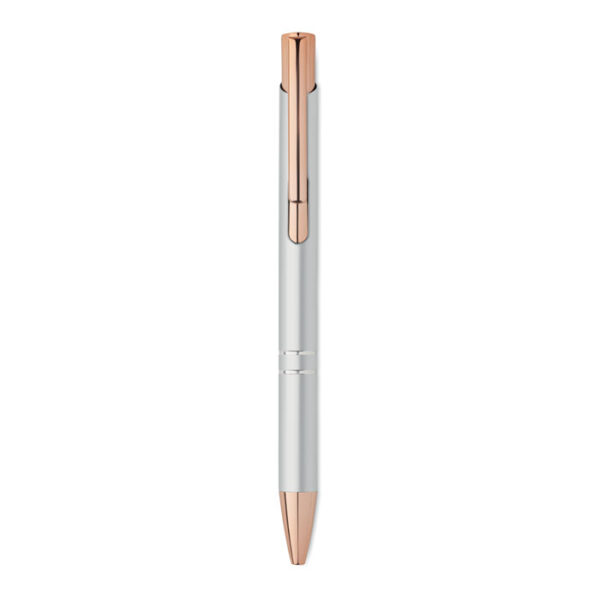 Bolígrafo con pulsador de aluminio reciclado. Tinta azul.