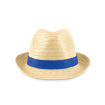 Sombrero de papel paja con cinta de poliéster. En los pedidos sin impresión, las cintas se servirán sueltas y separadas del sombrero.