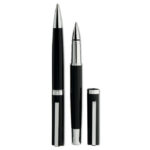 Set de bolígrafo giratorio y roller en caja de regalo. Tinta azul.