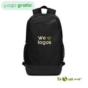 Mochila de poliéster 600D jaspeada con revestimiento de colores contrastantes y cordón decorativo en la parte frontal. Bolsillos de malla en ambos lados.