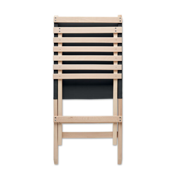 Silla de playa plegable de madera, con asiento bajo. Respaldo de tejido poliéster. Peso máximo 95 kg. Fabricado en Europa. Este artículo sólo se puede comprar/entregar en cantidades múltiples de 2 piezas