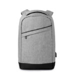 Mochila en poliéster 600D jaspeada y correas acolchadas. Cremallera de compartimento principal en parte interna para una mayor protección.