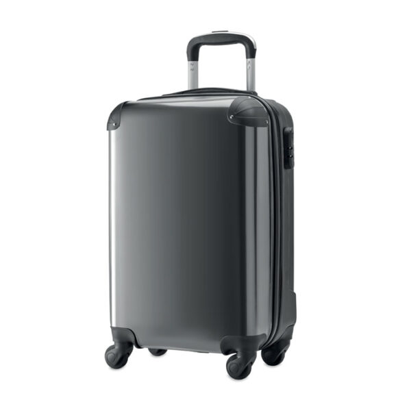 Trolley en PC y ABS con incrustación de fotos. Tiene un compartimento superior con cremallera y otro inferior con cintas. Incluye una cerradura de combinación y un marco de doble tubo.