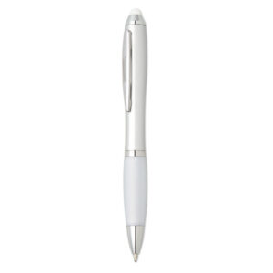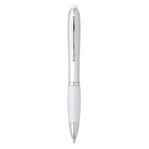 Bolígrafo giratorio de aluminio con acabado mate y puntero para pantallas táctiles. Tinta azul.