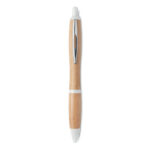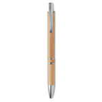 Bolígrafo con pulsador con cuerpo de bambú y detalles en ABS. Tinta azul. El bambú es material natural, el color del articulo puede variar.